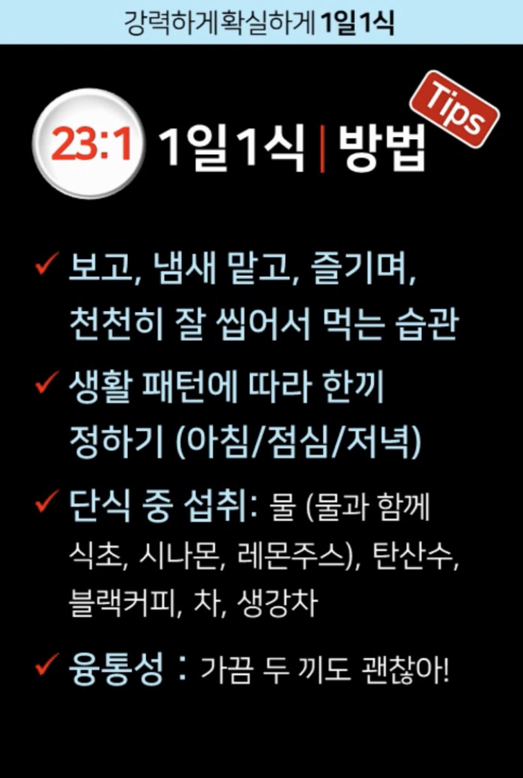 이제 여러분도 1일 1식에 도전해 보세요! 건강한 다이어트가 되길 바랄게요.