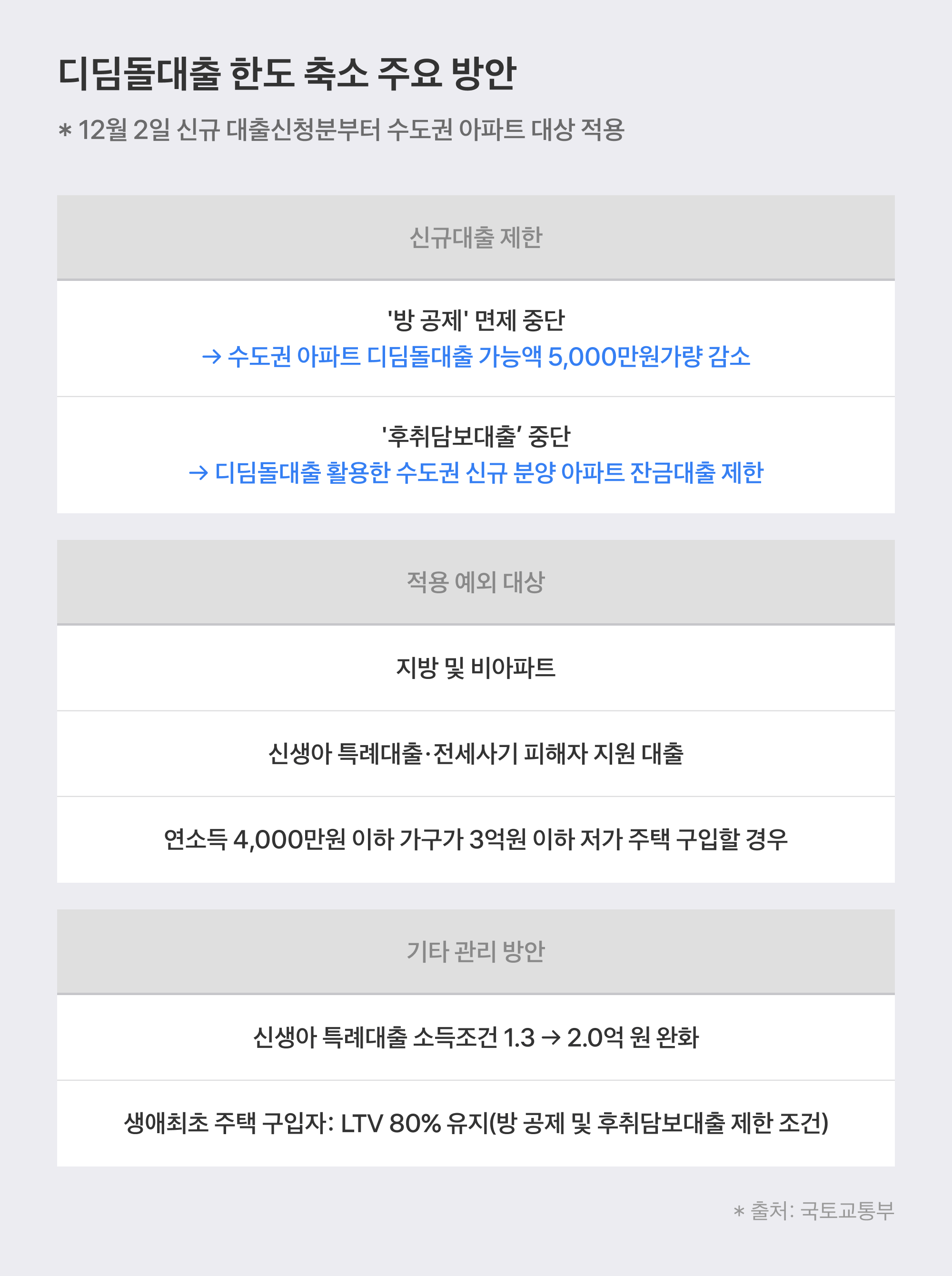 12월 2일부터 시행되는 새로운 규제는 디딤돌대출을 이용하는 많은 분들에게 영향을 미칠 것으로 예상돼요. 이번 규제의 주요 내용은 다음과 같아요: