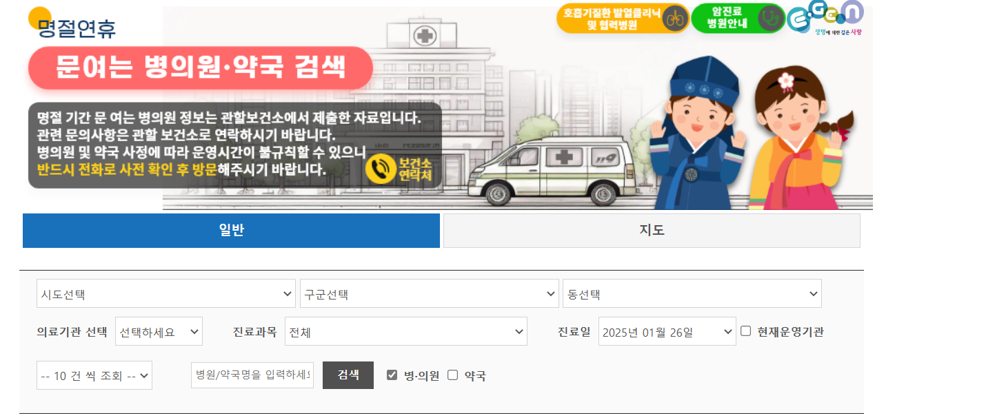 명절연휴 문여는 병원 찾기