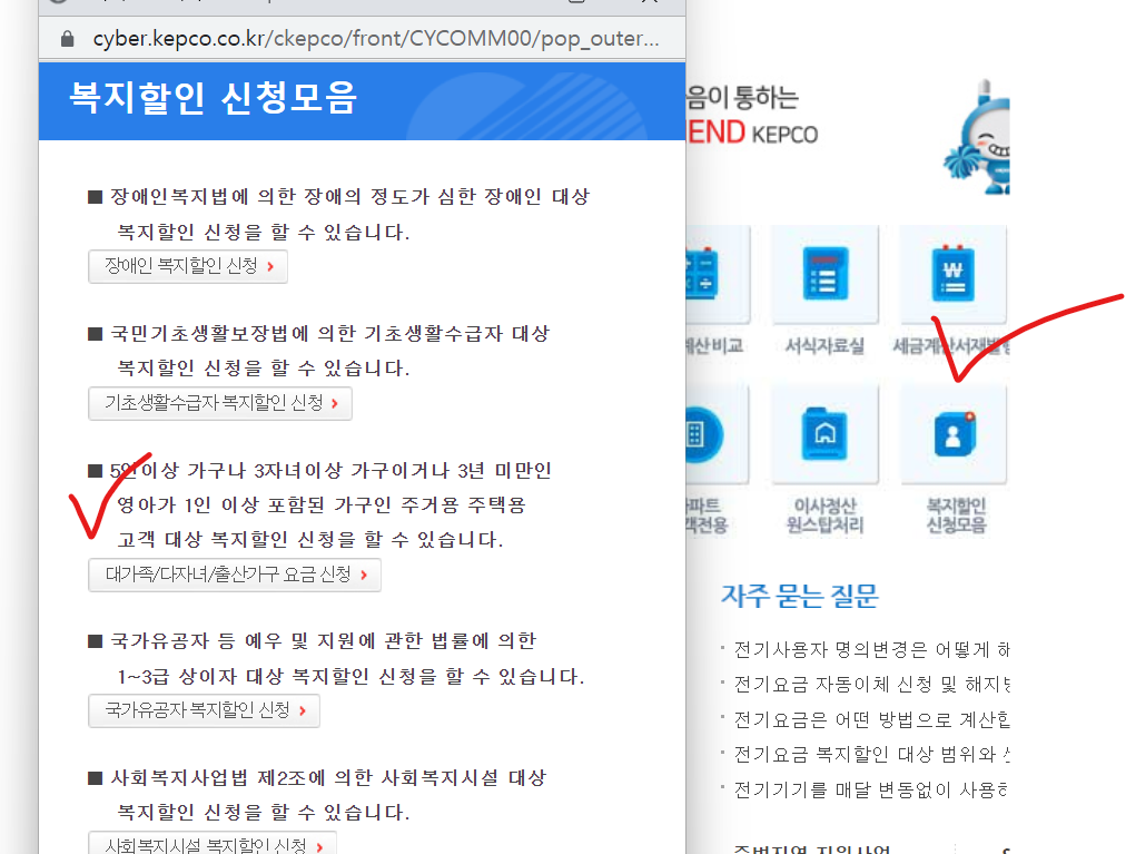 한전 사이버지점 - 전기요금 할인신청 바로가기