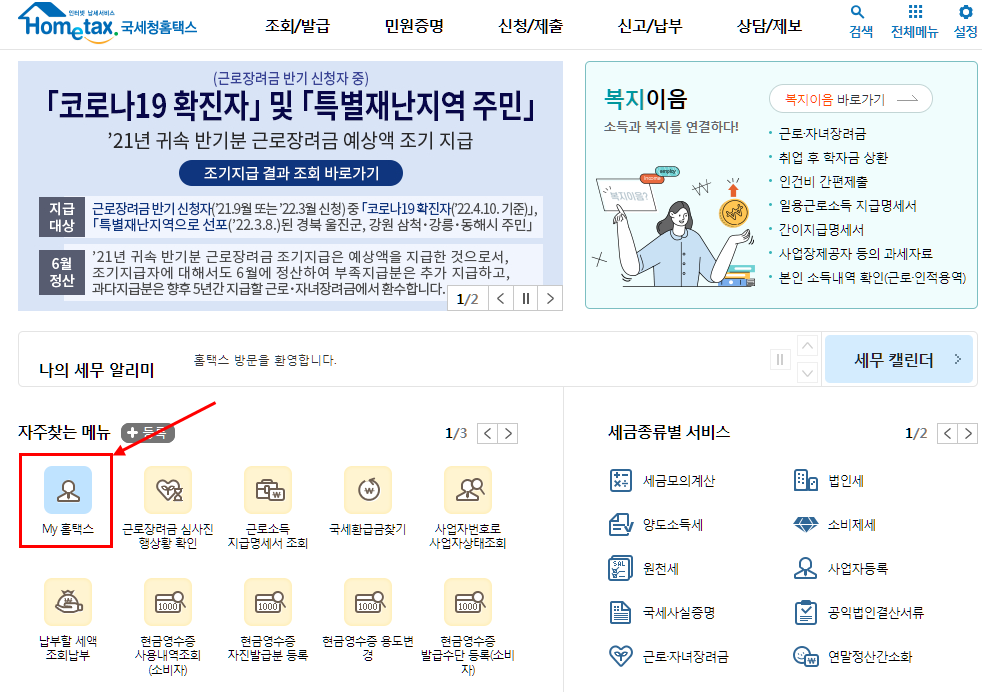 - 홈택스 홈페이지 접속 : 홈택스로 이동해요.