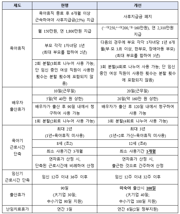 육아지원 3법 개정
