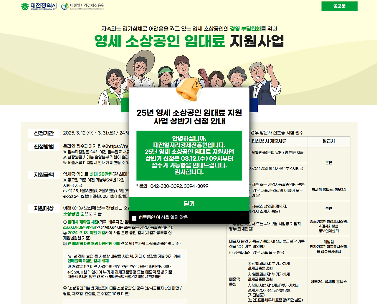 또한, 대전에서는 소상공인을 위한 임대료 지원 프로그램이 있으며, 온라인 신청이 가능합니다. 신청 기간은 2025년 3월 12일부터 31일까지입니다.