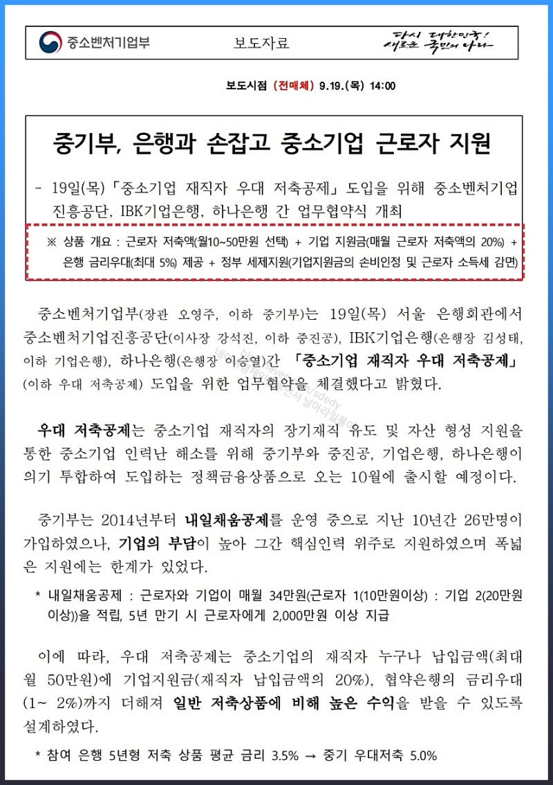 중소기업 재직자 우대 저축 공제 신청하세요