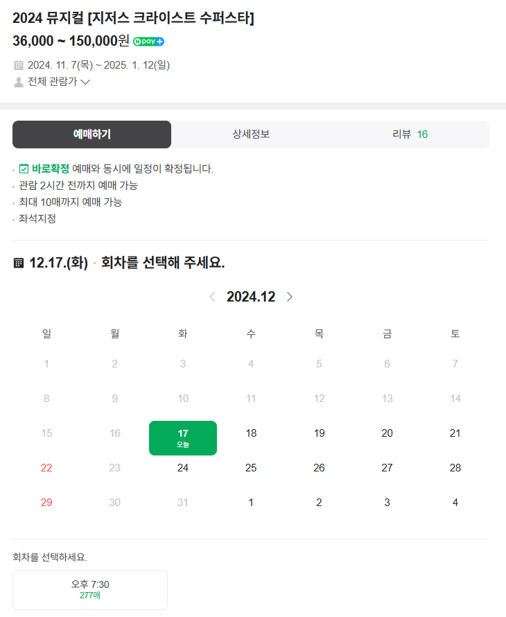 지저스 크라이스트 수퍼스타 소개 및 예약방법