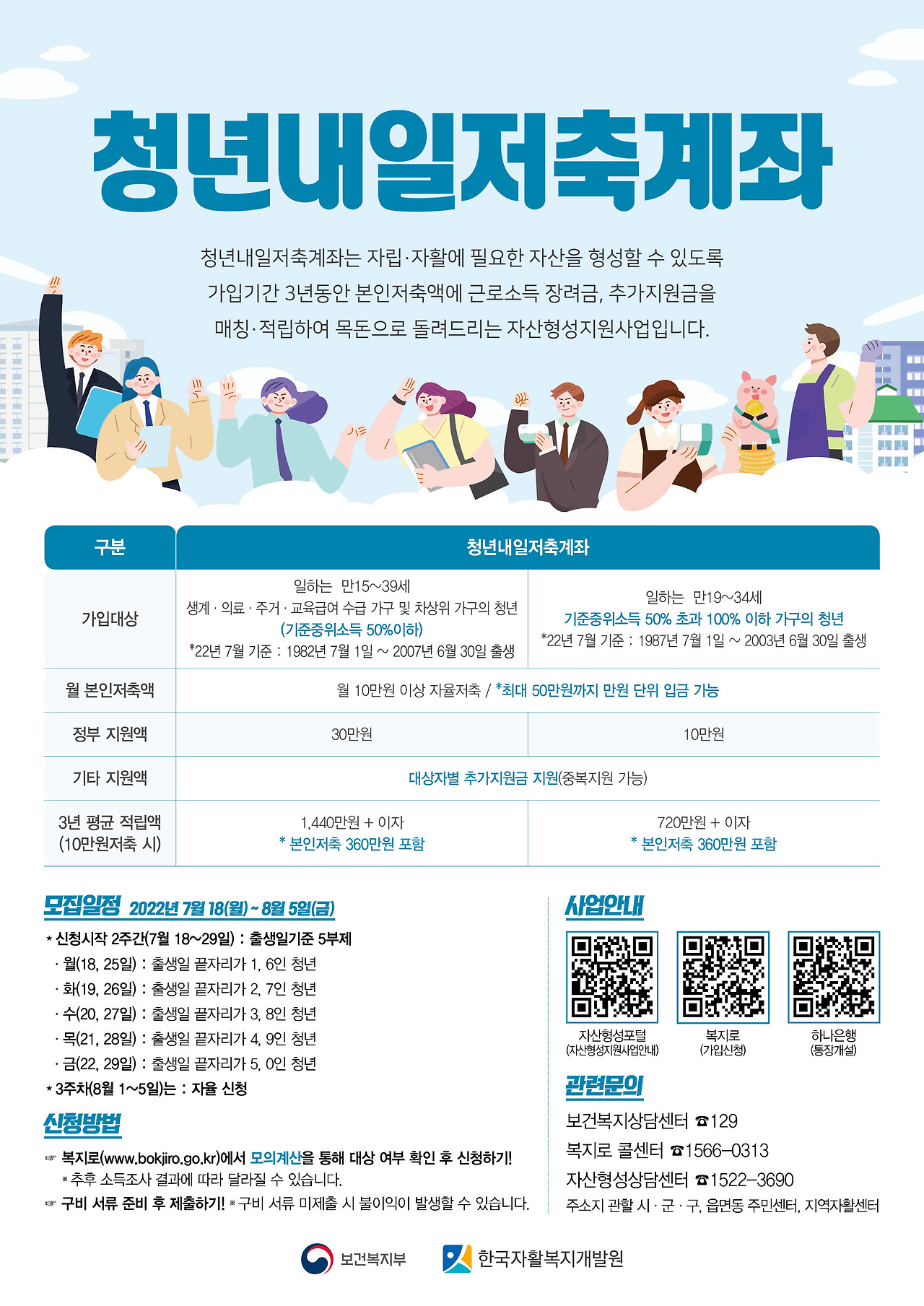 - 신청 후 3년 동안 저축을 유지하면, 지원금이 지급됩니다.
