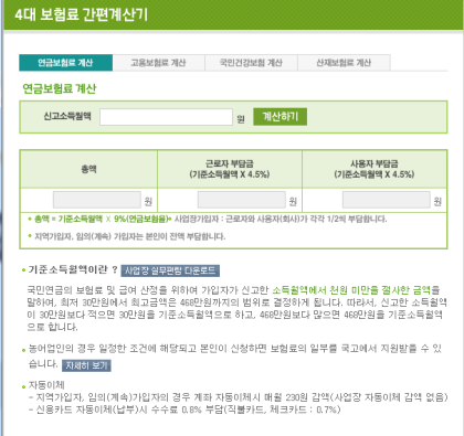 사용자는 해당 계산기를 통해 자신의 월급여를 입력하고, "계산" 버튼을 클릭하면 보험료가 자동으로 계산됩니다.